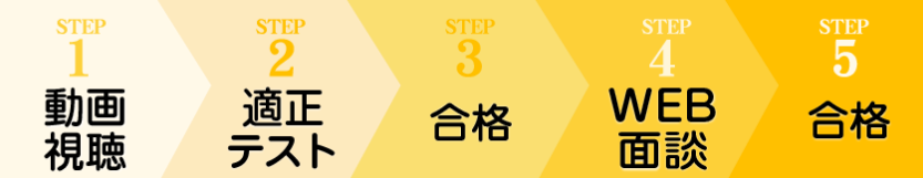 全国どこでも受けられる適正テスト・動画研修、WEB面談などを行い、選考いたします。