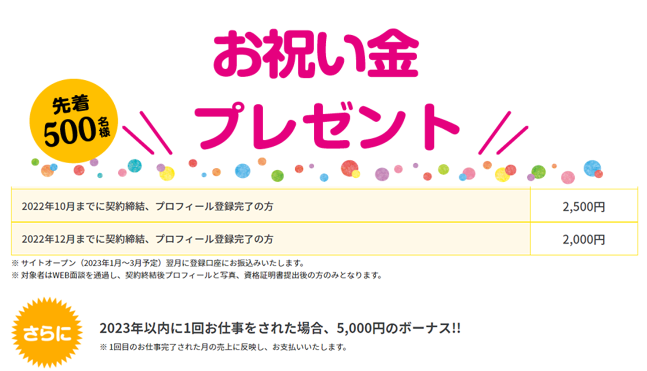 今なら現在、先着500名様に最大で¥7,500のお祝い金をプレゼントしております。