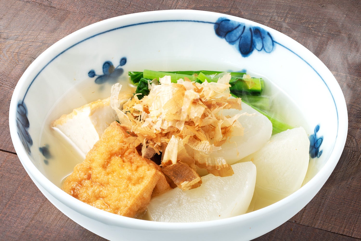 「カブとお揚げの炊いたん(450円)」は、薬膳で胃腸を温める作用があるといわれるカブを、出汁で煮込み、ほくほくに仕上げます。優しい味のカブが癒してくれること間違いありません。