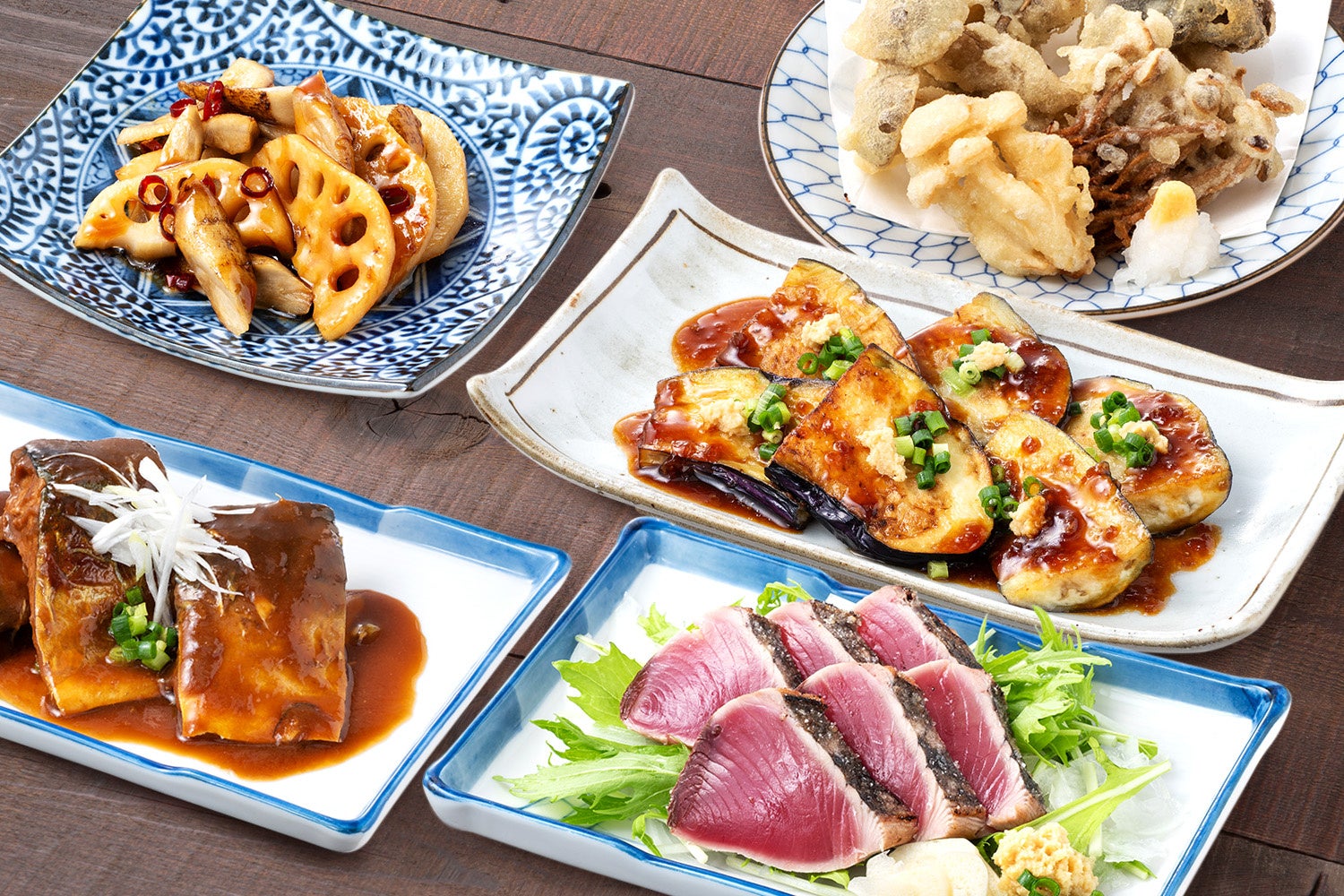 毎月恒例となった旬メニューですが、今回のメニューでは、旬真っ盛りのキノコや秋茄子、蓮根、旬の締めくくりを楽しむ戻り鰹(カツオ)など秋の食材を、板前がまごころ込めて調理した全8品を用意します。