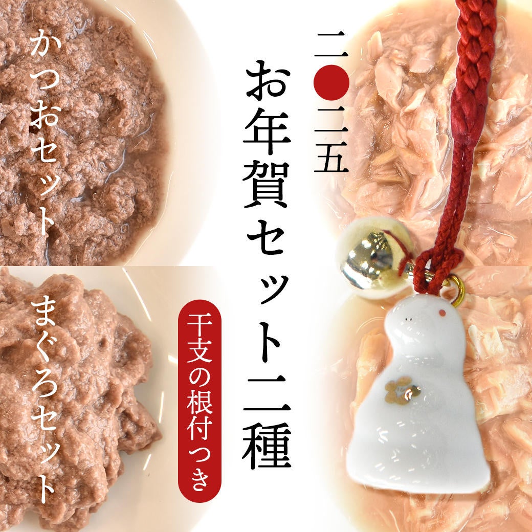 大切なうちの子にも縁起の良い食べ物で新年をスタートしてほしいという思いから、縁起のよい魚であるまぐろとかつおのセットをそれぞれご用意しました。犬友へのご挨拶などにもご活用ください。(数量限定での提供となっており、なくなり次第販売終了となります。)
