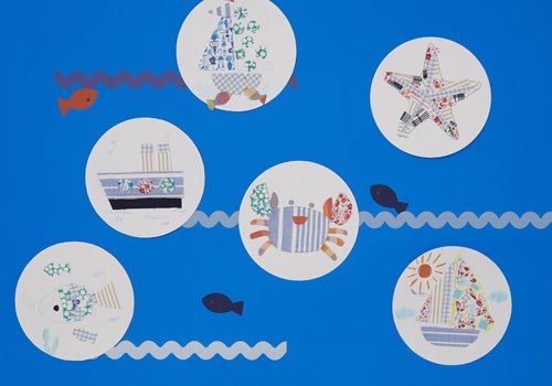 空想のヨットや船、魚、カニ、ヒトデを描こう!