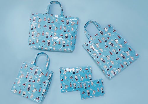 ファミちゃん・リアちゃんとそのなかまたち、船・ヨットなどが施された、賑やかで楽しいマリン総柄のバッグやポーチが登場!ビニル素材で汚れにくく、軽くて使いやすい仕様です。小さなサイズのバッグはお子様にもおすすめです。