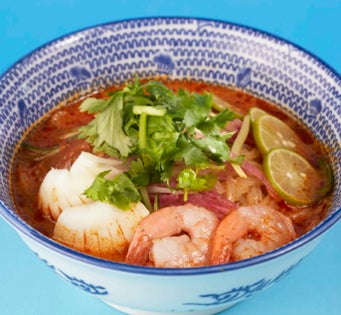 夏にピッタリな野菜とさっぱりとした冷たいトムヤムクンベースのスープと麺が食欲をそそる旨辛!