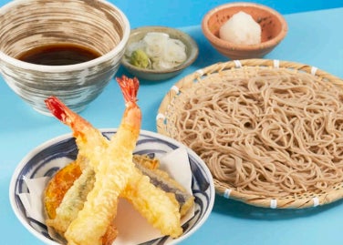 かぼちゃ、なすなどの夏野菜とぷりぷりの海老2尾をカラっと揚げた夏の天せいろそば
