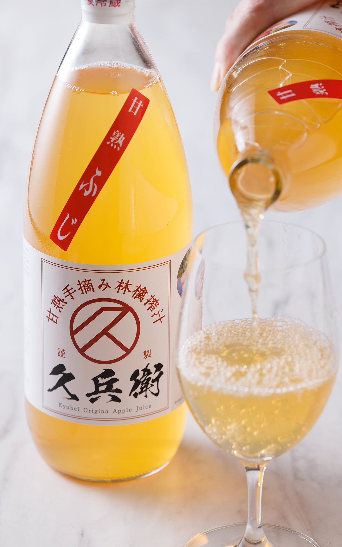 秋田県由利本荘市西目町で40年以上続く斎藤果樹園の「久兵衛謹製 完熟手摘み林檎ジュース」。