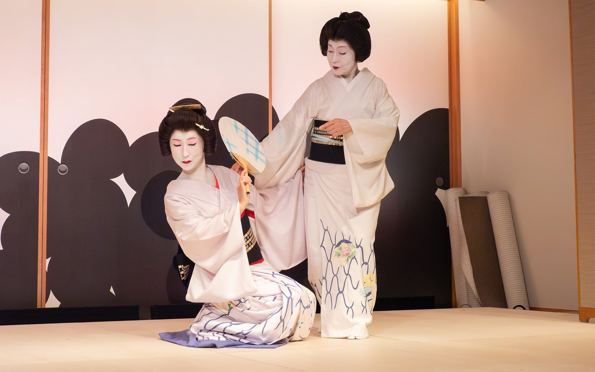 三社祭期間は、浅草神社の由来となった漁師兄弟を題材にした演目を演じるため、芸者衆の袴姿の奉納舞踊もご覧いただけます。