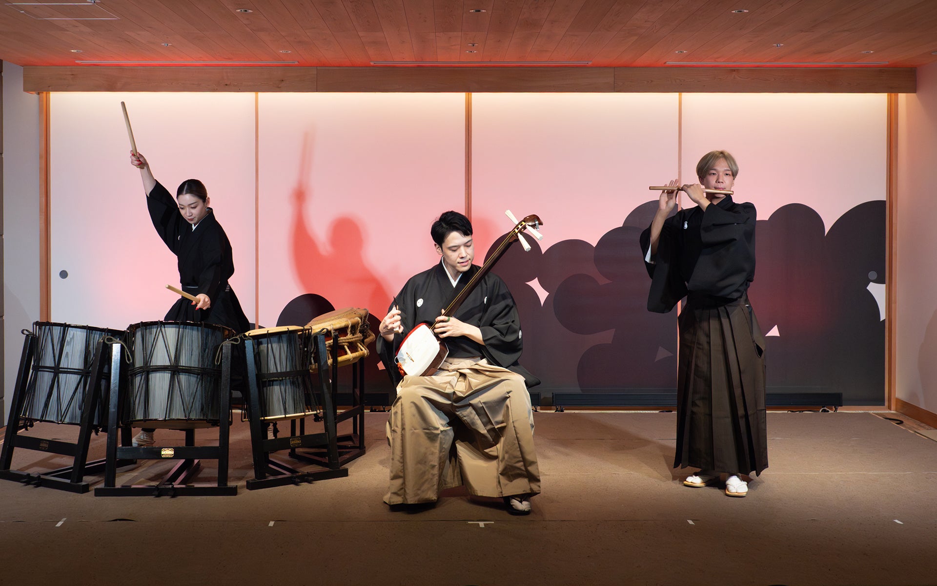 また老舗の太鼓店でもあり、和太鼓と和楽器の演奏が重厚で心を揺さぶる響きが会場内に響き渡ります。伝統と革新が響き合う、祭りの魂を揺さぶる演奏をご体感ください。