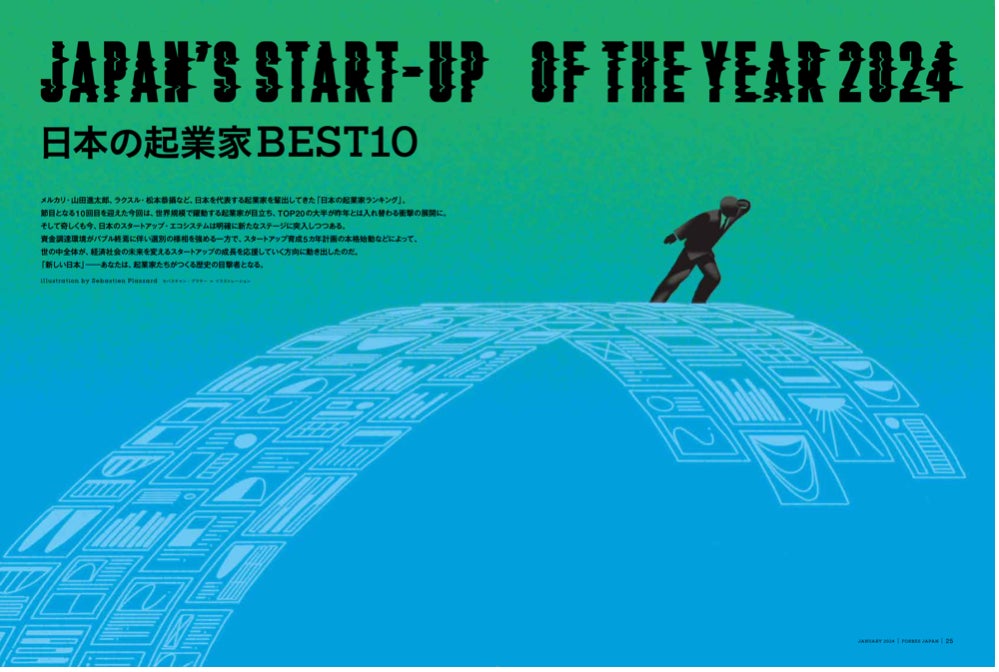 「日本の起業家ランキング」は、メルカリ・山田進太郎、ラクスル・松本恭攝など、日本を代表する起業家を輩出してきたForbes JAPANの名物企画。特集内では、BEST10に選出されたすべての起業家のインタビュー記事や、2024年に飛躍が期待される次世代の日本発スタートアップ100選、VC業界が注目する「日本で最も影響力のあるベンチャー投資家ランキング」、Forbes米国版が次なるユニコーン企業25社を選出した「NEXT BILLION-DOLLER STARTUPS」の最新版も掲載。スタートアップ・シーンの今と未来が見えてくる決定版として、内容盛りだくさんでお届けします。
