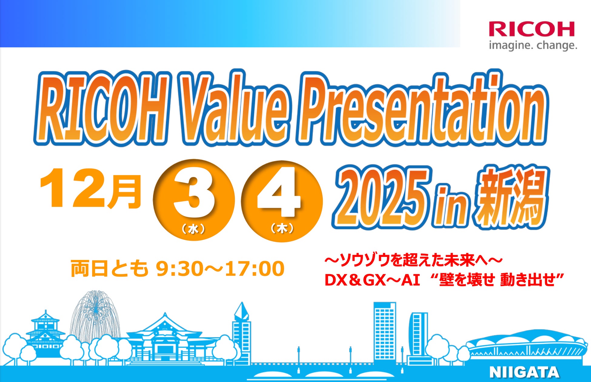 【12/3(水)~12/4(木)開催】 スカイディスクが「RICOH Value Presentation 2025 in 新潟~ソウゾウを超えた未来へ~DX&GX~AI “壁を壊せ 動き出せ”」出展