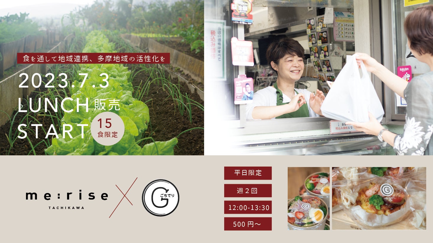 地元の野菜をふんだんに、me:rise立川のためのスペシャルなお弁当を販売します。