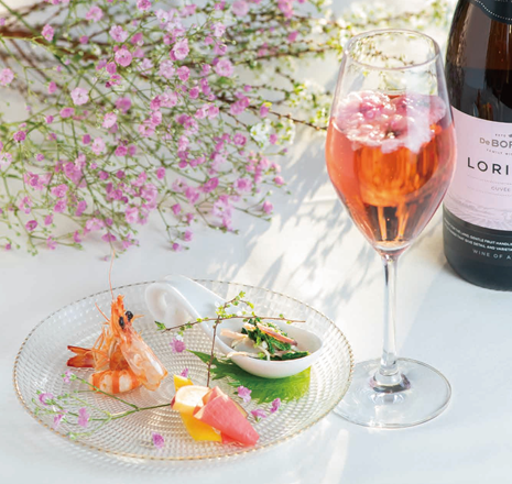 桜の花びらを入れたロゼスパークリングワインと季節の前菜セット 1,210円