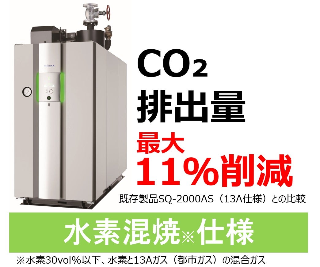 産業用ボイラのトップメーカーである三浦工業株式会社(東京本社:東京都港区、代表取締役:米田 剛)は、小型貫流蒸気ボイラSQ-2000ASの更なるCO₂削減のため水素混焼仕様変更キット(以下、「本製品」という。)を開発しました。10月より受注を開始し、2025年1月より発売します。
