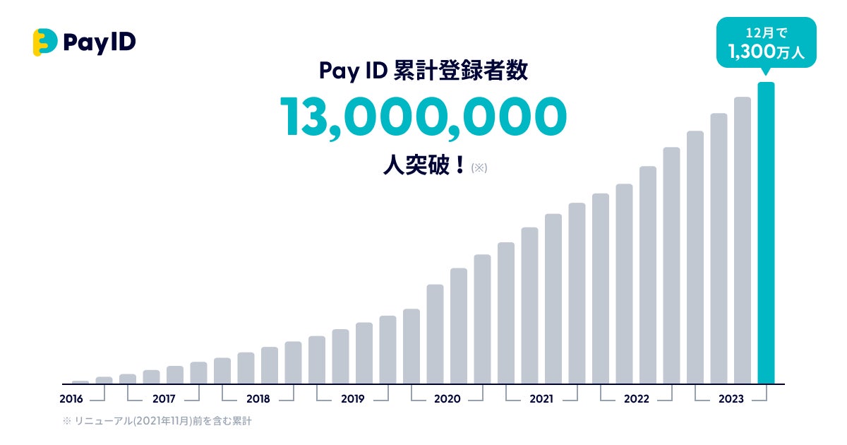 購入者向けショッピングサービス「Pay ID(ペイ アイディー)」の累計ID登録者数が1,300万人を突破!