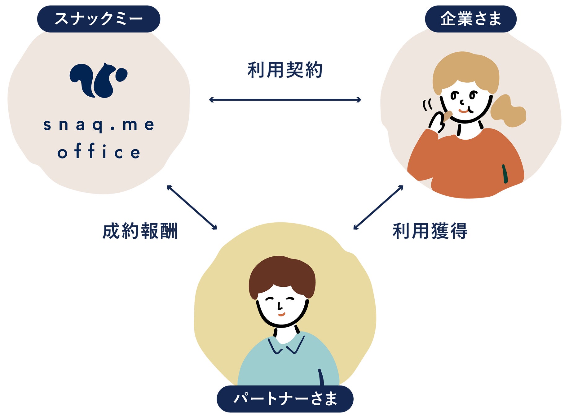 snaq.me officeでは、貴社の商材提案の幅をぐっと広げるセールスパートナー/販売代理店制度を導入しています。