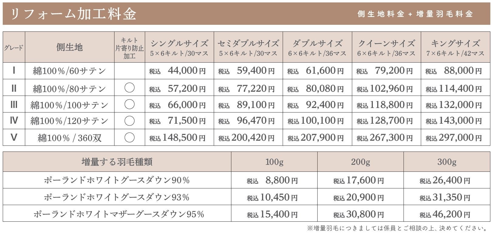 リフォーム加工料金55,000円以上のご利用で仕立て直し後のおふとんの配送費も無料です。