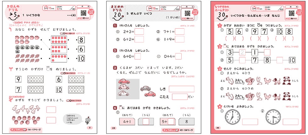 ・「計算」「数・りょう・図形」などの分野別ではなく、教科書の算数の進み方とあわせて学習できます。