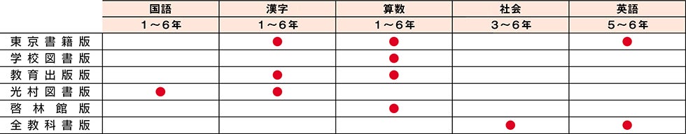 算数:東京書籍版、学校図書版、教育出版版、啓林館版