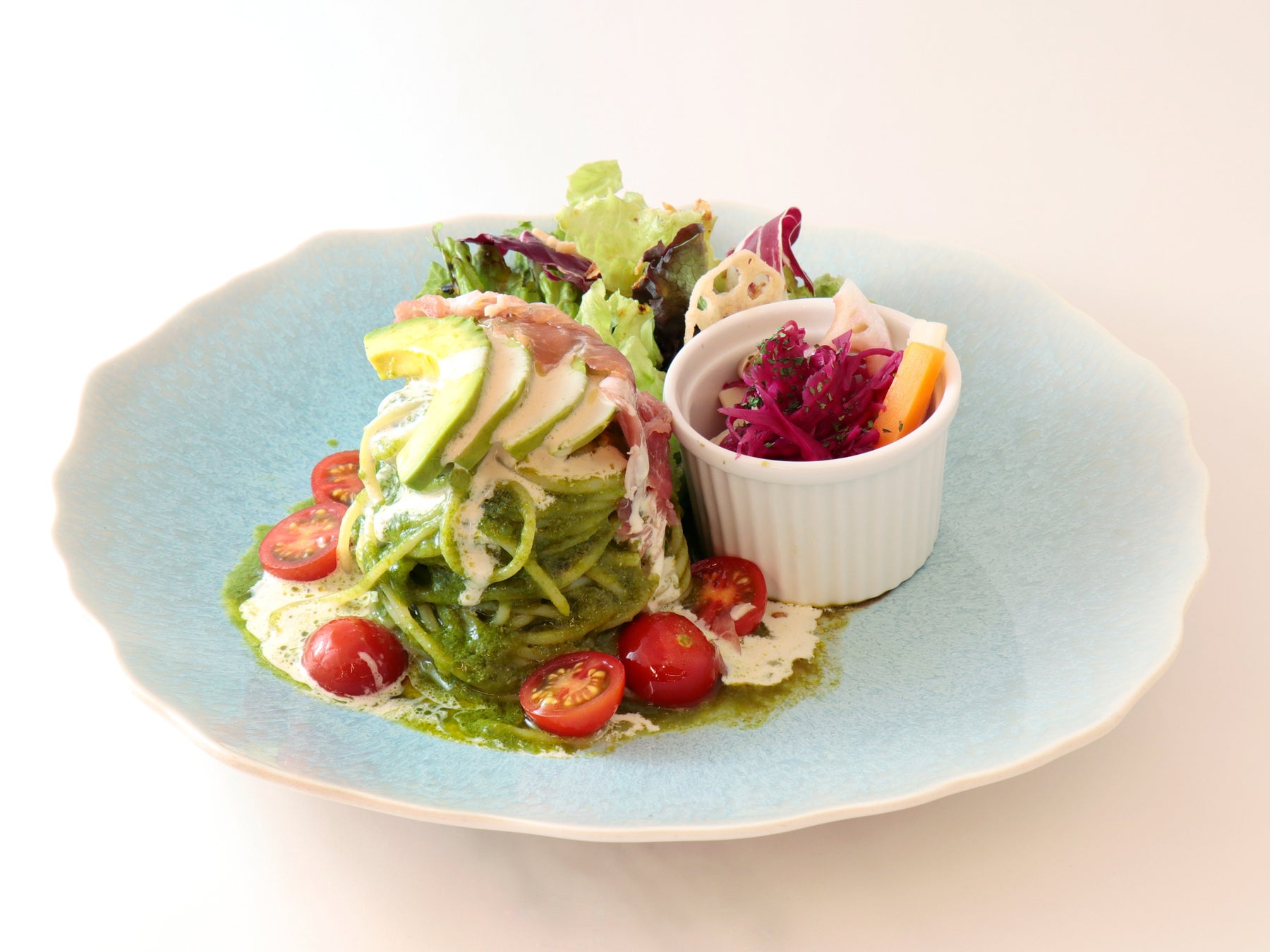 - ランチセットにバジルソースで仕上げた冷製スパゲティをメインにしたパスタセットが仲間入り!