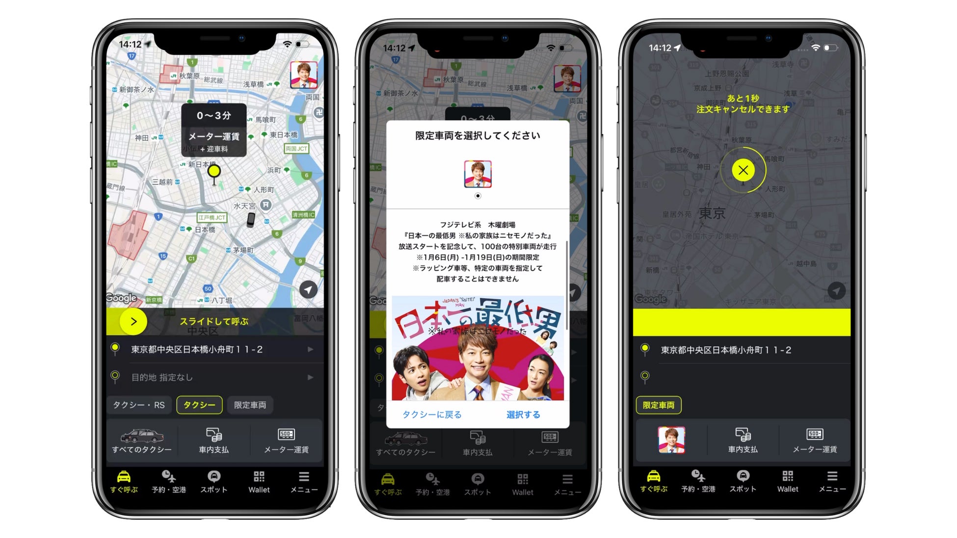 モビリティプラットフォーム事業を展開する株式会社ニューステクノロジーとタクシーアプリ 「S.RIDE®(エスライド)」を提供するS.RIDE株式会社は、両社が運営する日本初のモビリティ車窓メディア「THE TOKYO MOBILITY GALLERY Canvas」(以下「Canvas(キャンバス))を活用し、2025年1月6日(月)〜2025年1月19日(日)の期間限定で、1月9日(木)夜10時より放送予定のフジテレビの新ドラマ『日本一の最低男 ※私の家族はニセモノだった』とのコラボタクシーが走行することをお知らせします。本タクシーは、タクシーアプリ「S.RIDE」で指定配車が可能です。