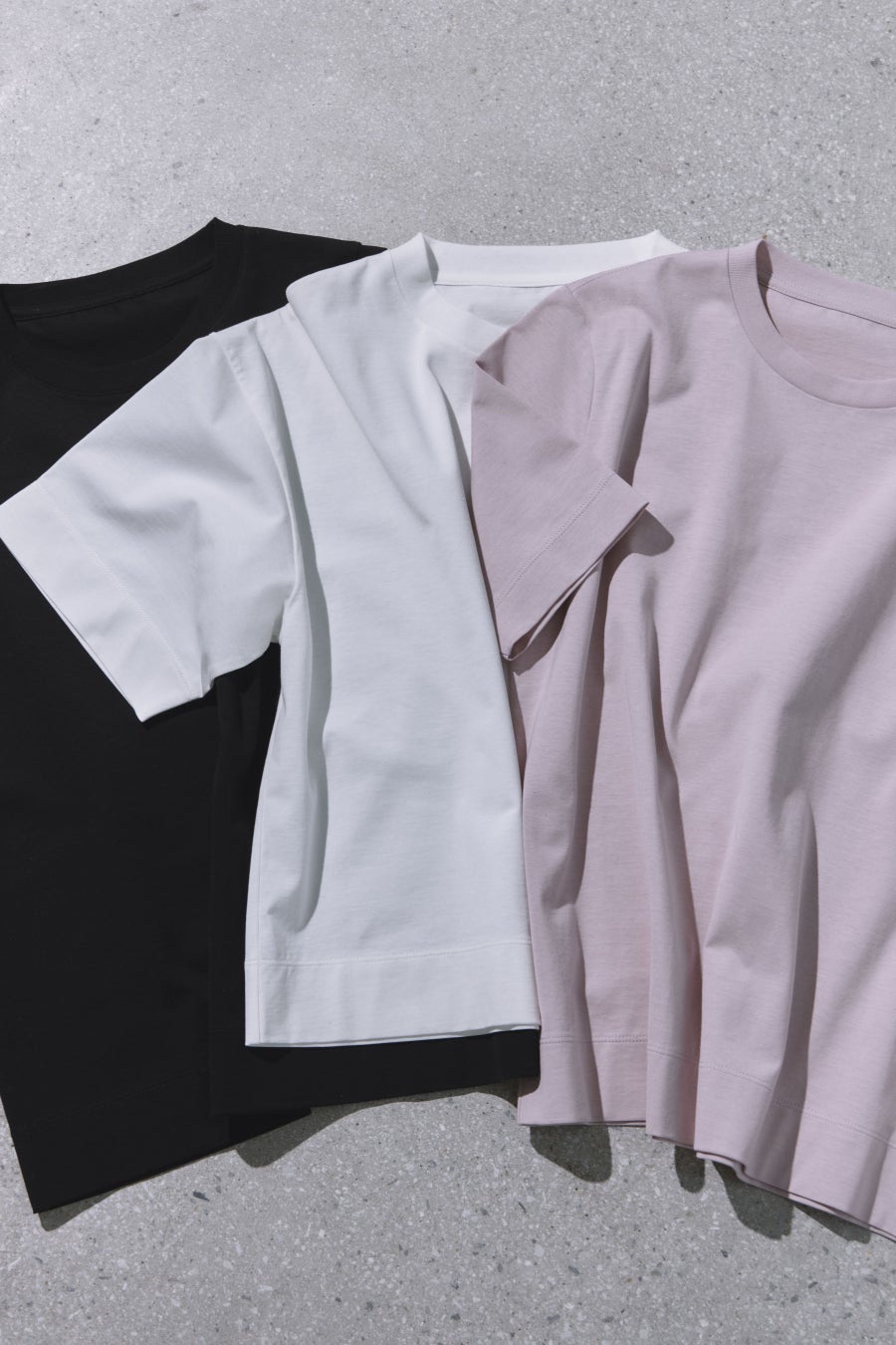 ベーシックTシャツは、立体的なパターンと繊細な襟周りの絶妙なバランスを追求。余計な装飾を削ぎ落としたシンプルなアイテムだからこそ、ディテールの完成度が印象を左右します。