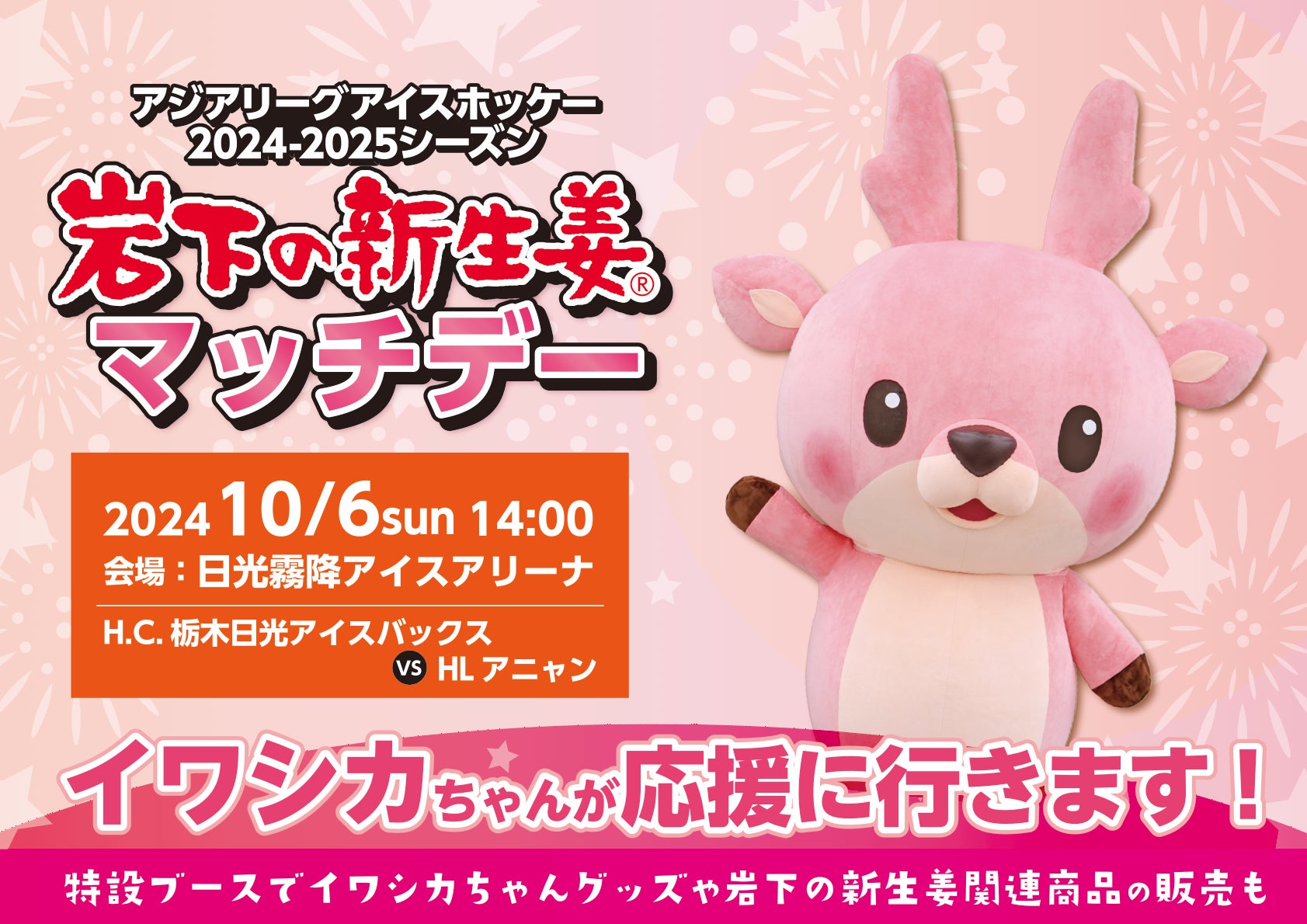 H.C.栃木日光アイスバックスは、2024年10月6日(日)開催の日光シリーズ、対HLアニャンを「岩下の新生姜 マッチデー」として開催します。