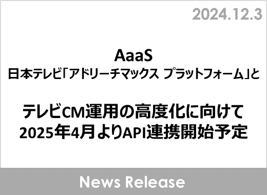 AaaS、日本テレビ「アドリーチマックス プラットフォーム」とテレビCM運用の高度化に向けて2025年4月よりAPI連携開始予定