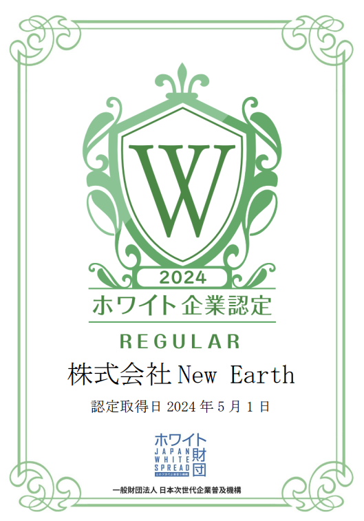 株式会社New Earthは2024年5月1日に「ホワイト企業認定 レギュラーランク」を取得されました!