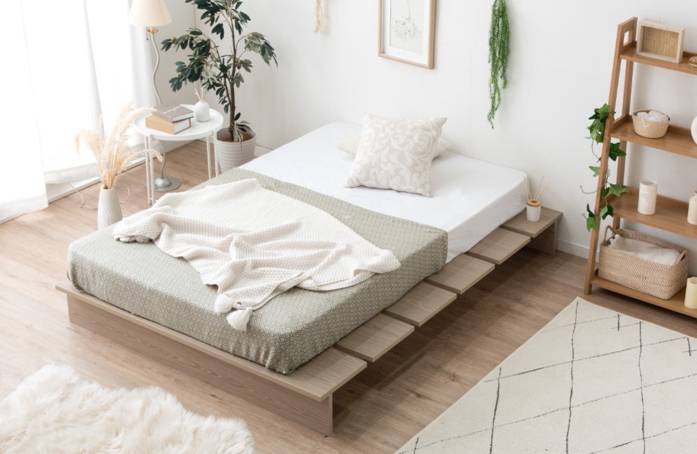 “ステージベッド”とはマットレスの両サイドにゆとりがあり、一般的なベッドフレームのサイズよりサイドフレームがひと回り大きめに作られたものを指します。