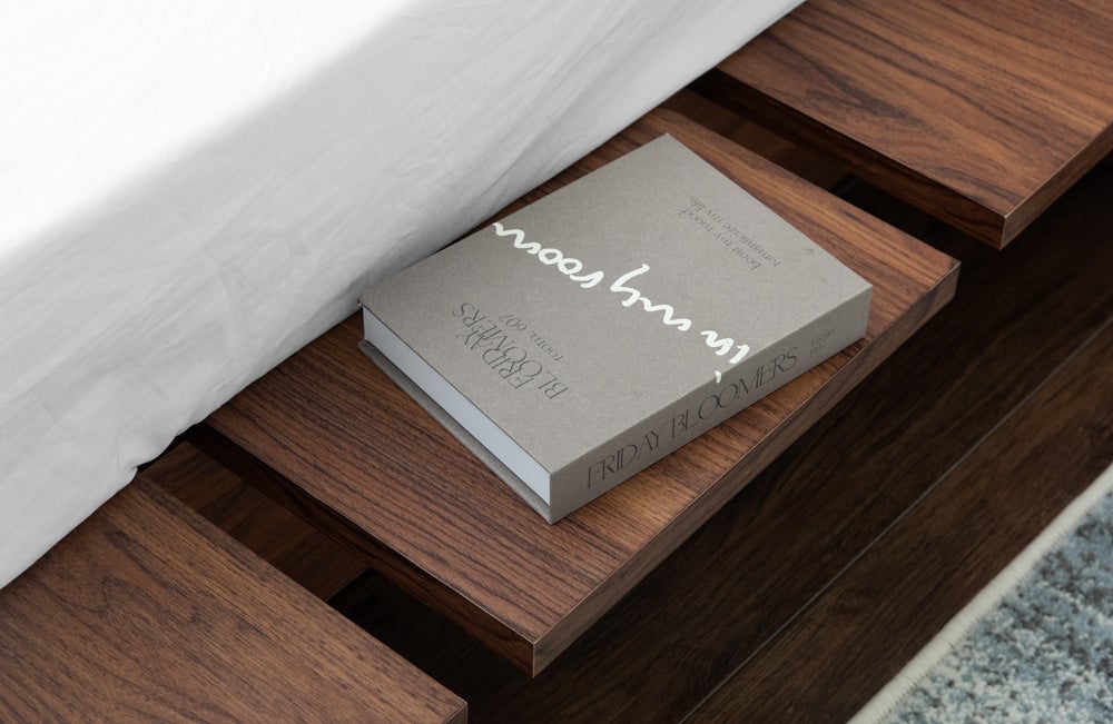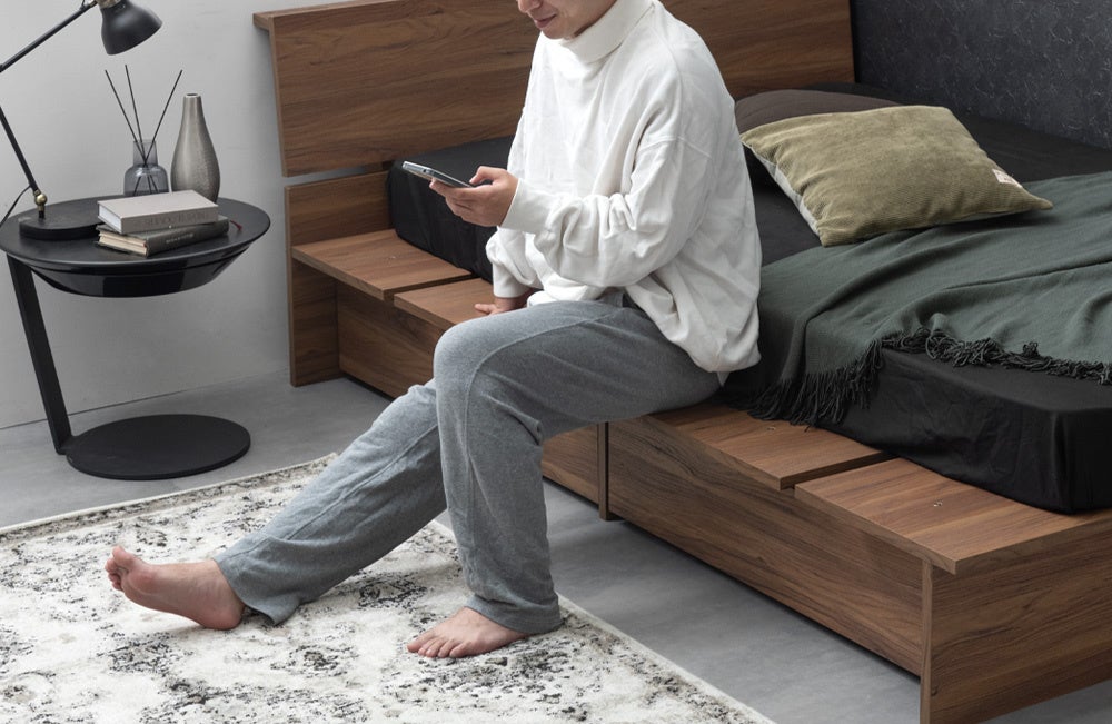 前述のとおり、ステージベッドはサイドフレームがマットレスよりも大きく、ワイドなサイズ感であることから左右のステージ部分に余裕があることで見た目もゆったりとしており、さまざまな使い方が可能です。