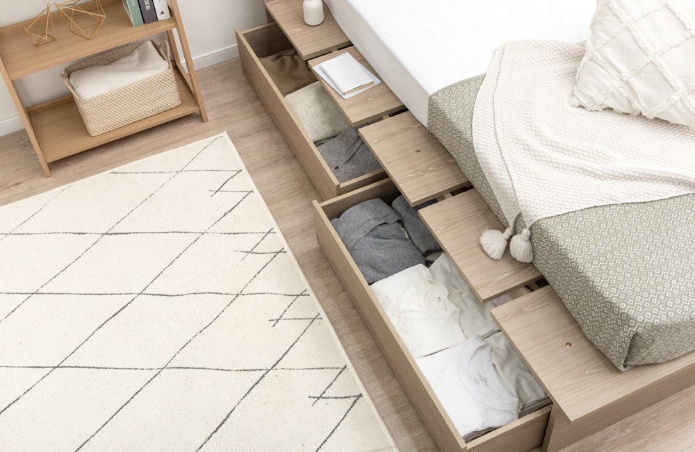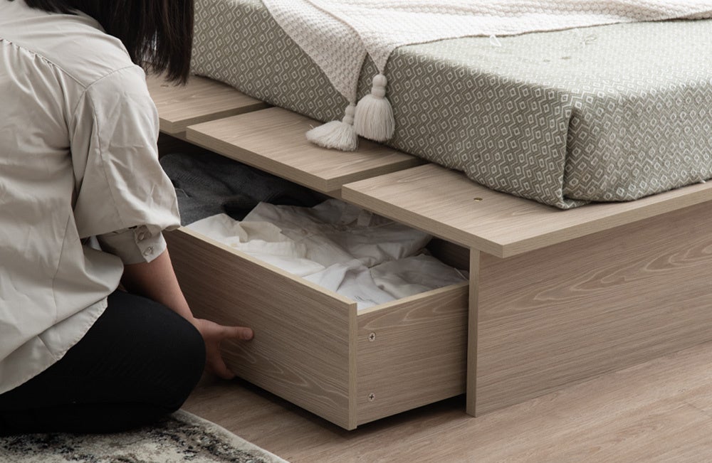 一般的なステージベッドは収納付きの製品が少なく、ベッド下のスペースを有効活用できないケースが多く見受けられます。