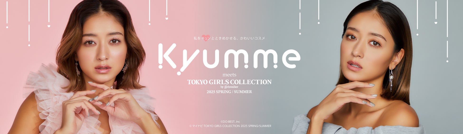 「Kyumme」は、”私をきゅんとときめかせる、かわいいコスメ”です。上品なピンクやブラウンのベースカラーにラメを加えたフェミニンなメイクで毎日をよりときめかせるコスメブランドとなっています。メイク道具、化粧下地からポイントメイクなど、バリエーション豊富に取り揃えています。今回の新作アイテムは、「チャームアイシャドウパレット」や「リッププランピンググロス」など、いつものデイリーメイクにTGCの華やかさを取り入れられる商品ラインアップとなっています。