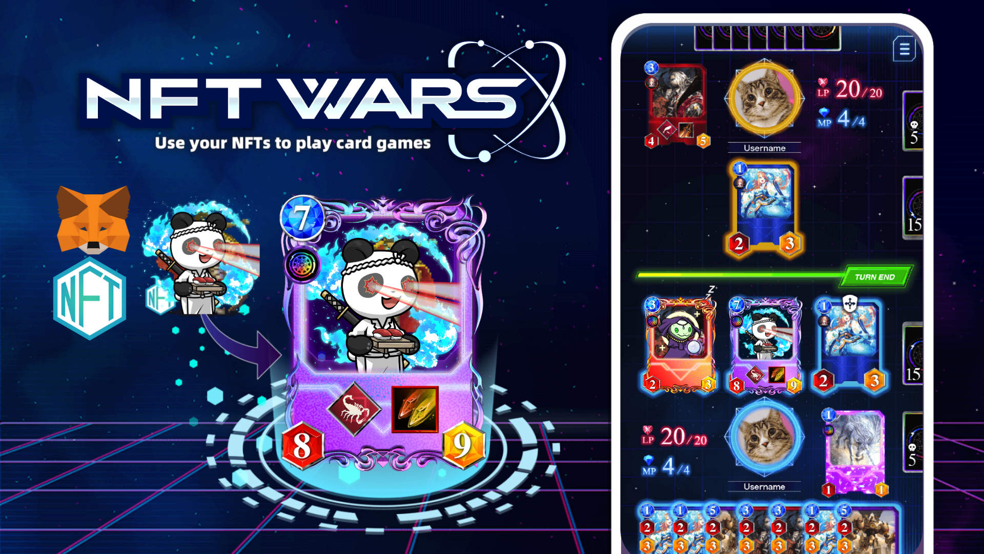 『NFTWars』は、手軽にNFTプロジェクトにゲームのユーティリティを付与できるサービスです。ユーザーはウォレットで所有するNFTを使用し、様々なNFTプロジェクトのカードゲームで遊ぶ世界の実現を目指します。