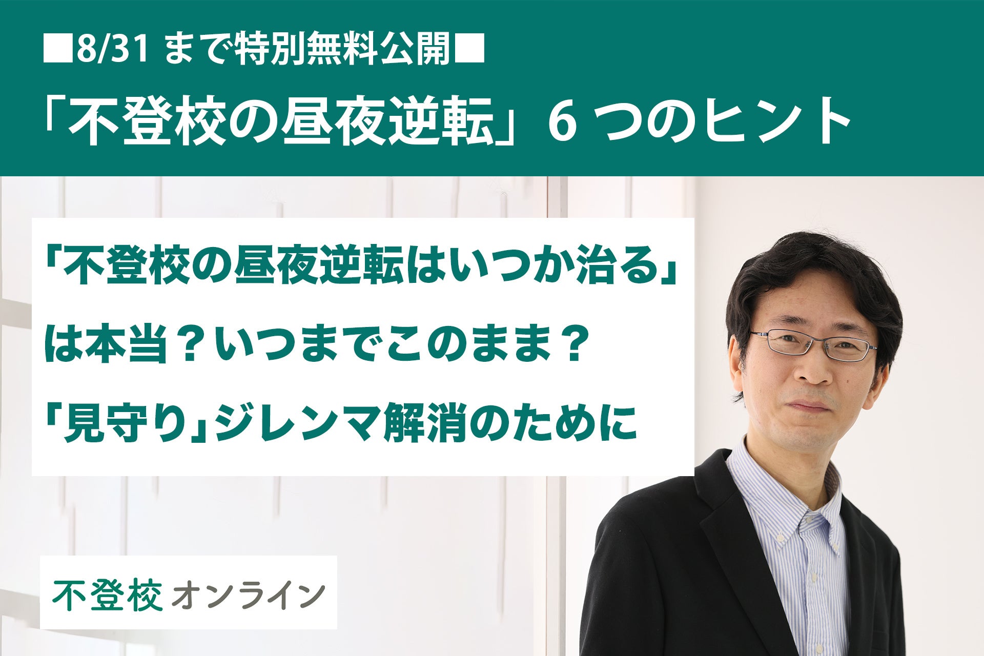 第2弾(7月16日)では、キズキ共育塾の相談員・半村進氏による解説記事「『不登校の昼夜逆転はいつか治る』は本当?──“いつまでこのまま?”そんな不安に効く6つのヒント」を無料公開。