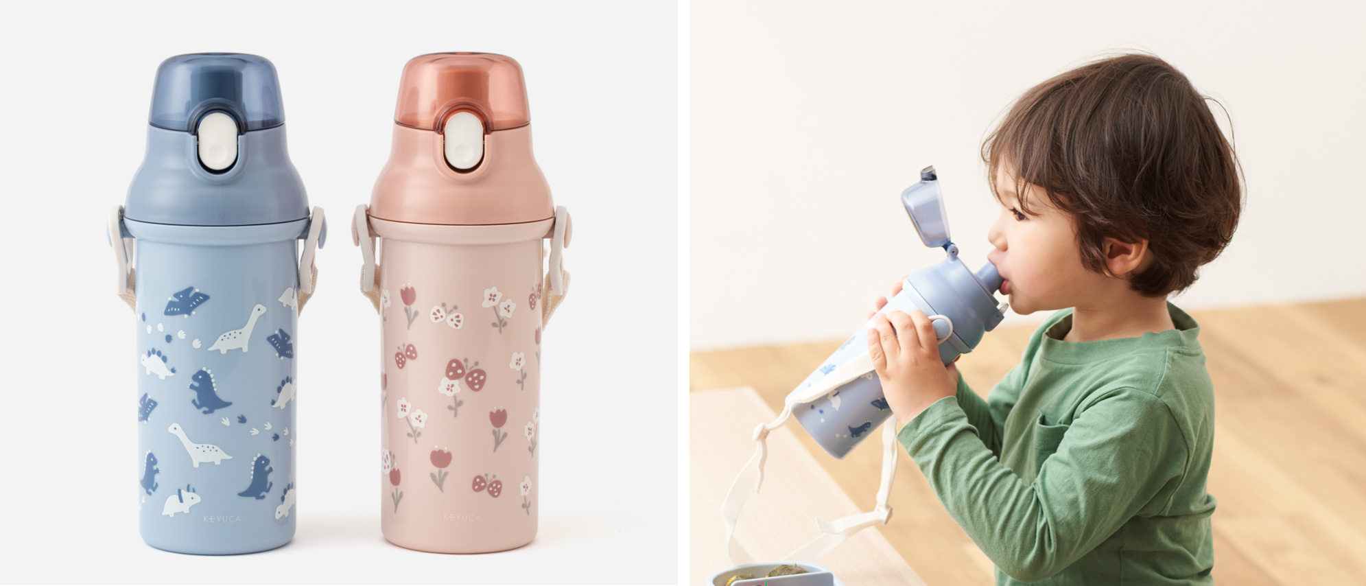 KEYUCAのベビー・キッズアイテムは「安心・安全・育む」をテーマに掲げ、暮らしになじむ優しい色合いや、使いやすさにこだわりながら、日々商品を開発しています。特にキッズアイテムは“育む”という点にフォーカスを当て、子どもが自分でやりたいという気持ちをサポートし、「できた!」という自信につながるように、お弁当などの定番のアイテムもデザインや機能を一工夫しています。