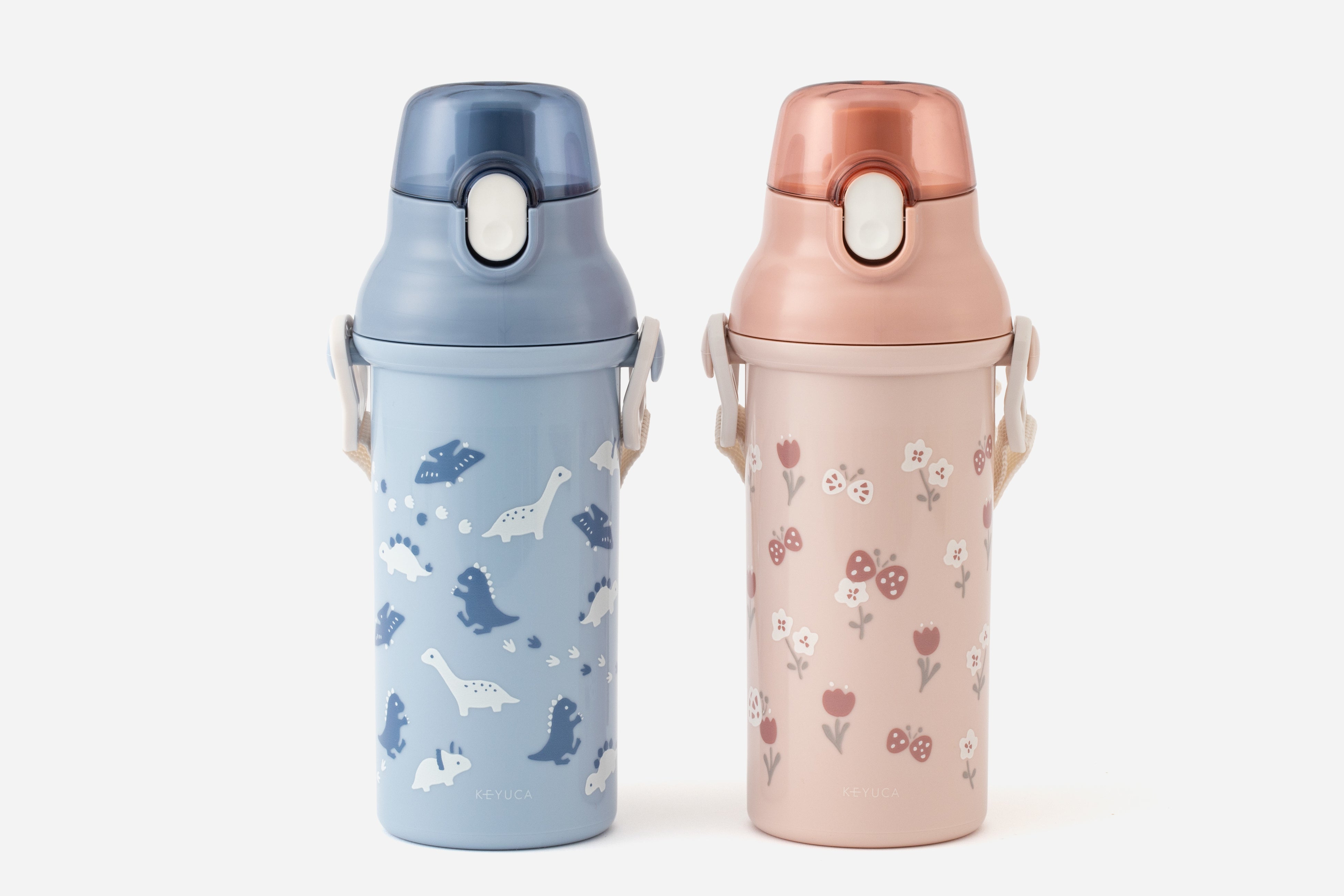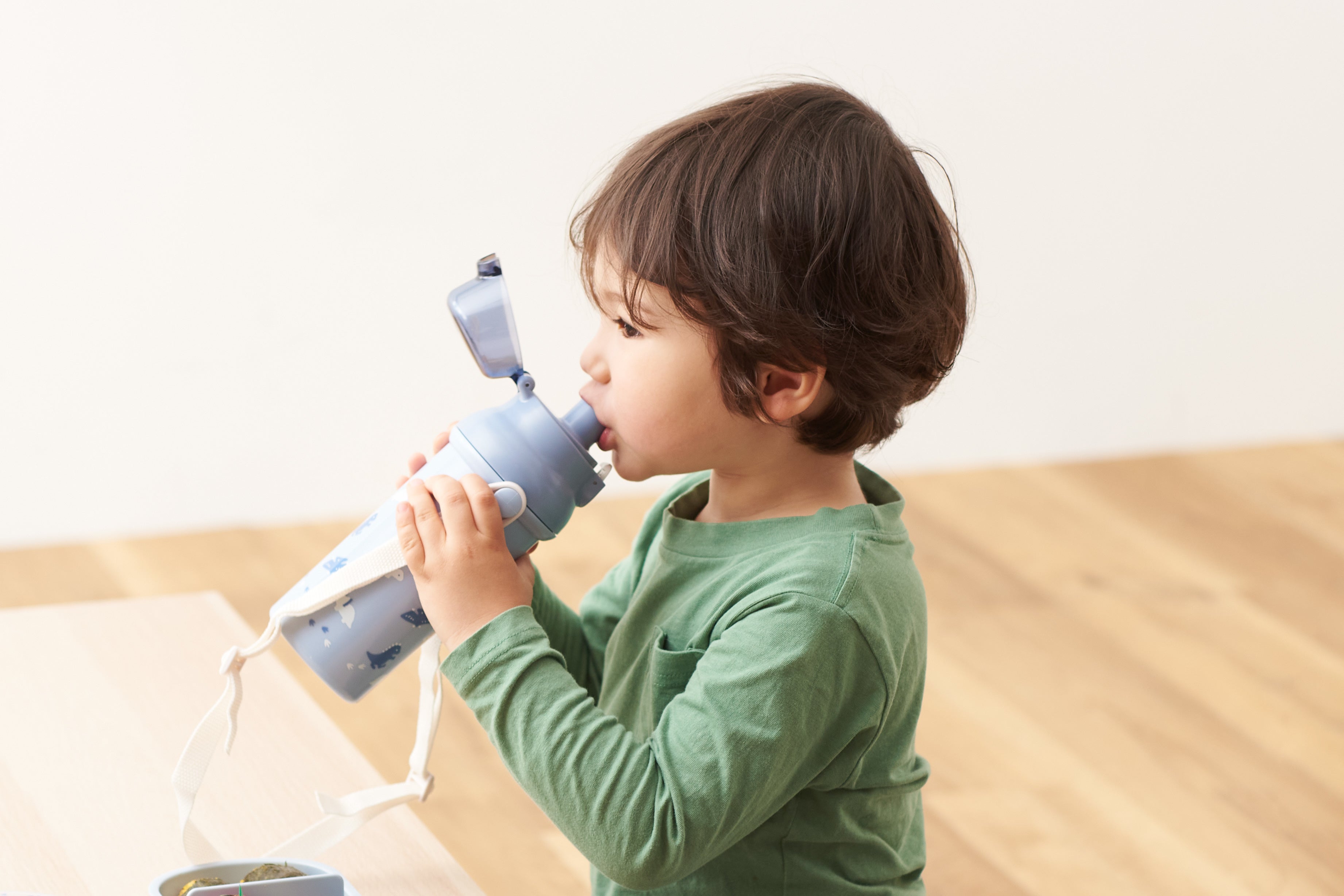 合わせて使いたい、軽くて持ち運びに便利なプラスチックの水筒。お弁当箱・カトラリーセットと同様に抗菌機能付きです。また、ロックのないプッシュ式で簡単にフタが開けることができ、ダイレクトな飲み口なので、フタを開けたらすぐに飲むことができます。氷を入れやすく、洗いやすい広口タイプなので、ママ・パパにも嬉しい作りに。肩にかけて持ち運べるショルダーベルトが付いているため、遠足などの持ち運びにも便利です。