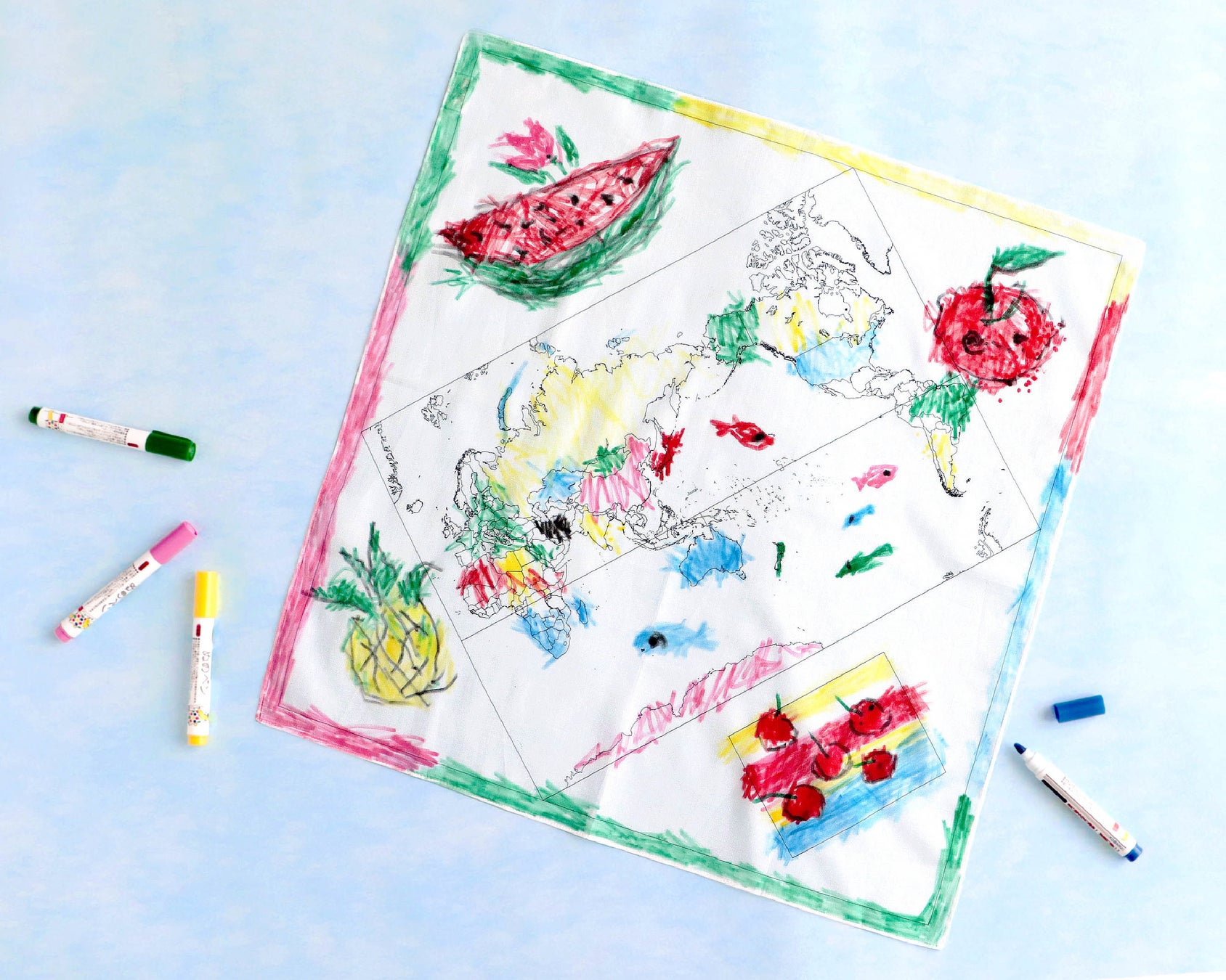 - お絵描きテーマは「ハンカチーフに、自分の国旗を描こう」