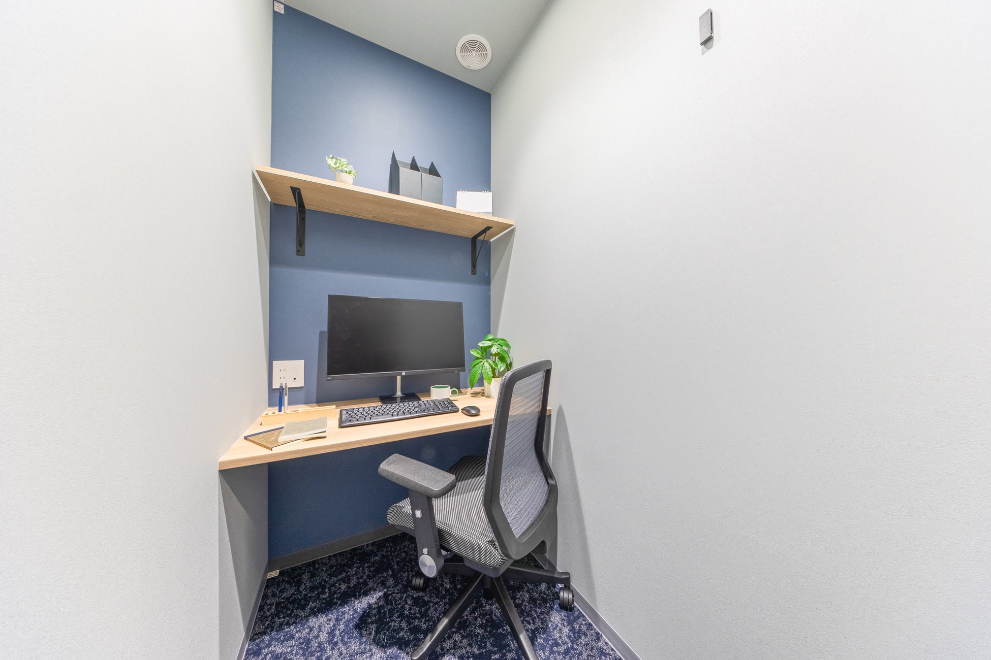 施設内には会議室を併設しており、お客様との商談や面接、WEB会議などに利用できます。1名用個室型のWEB会議ルームも備えており、周囲を気にせずオンライン会議に参加しやすい環境です。