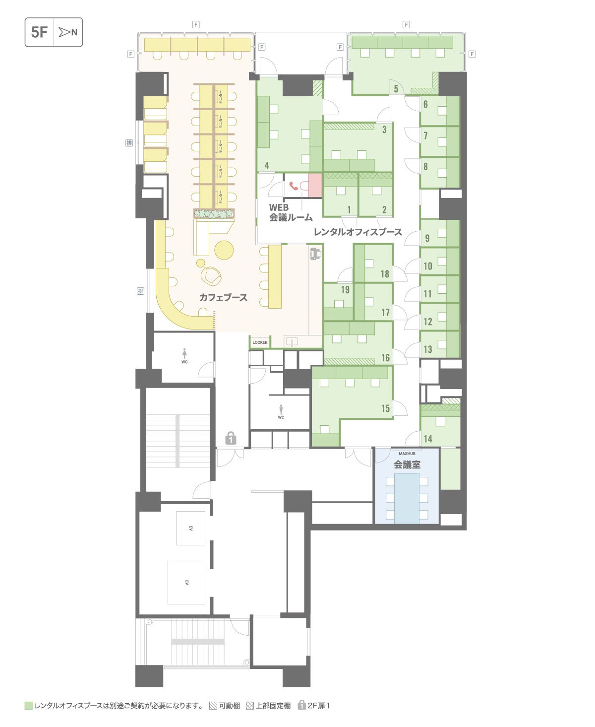 設備:無線LAN、フリードリンク、無料プリンター、ロッカー、ポスト、登記可、会議室、WEB会議用個室