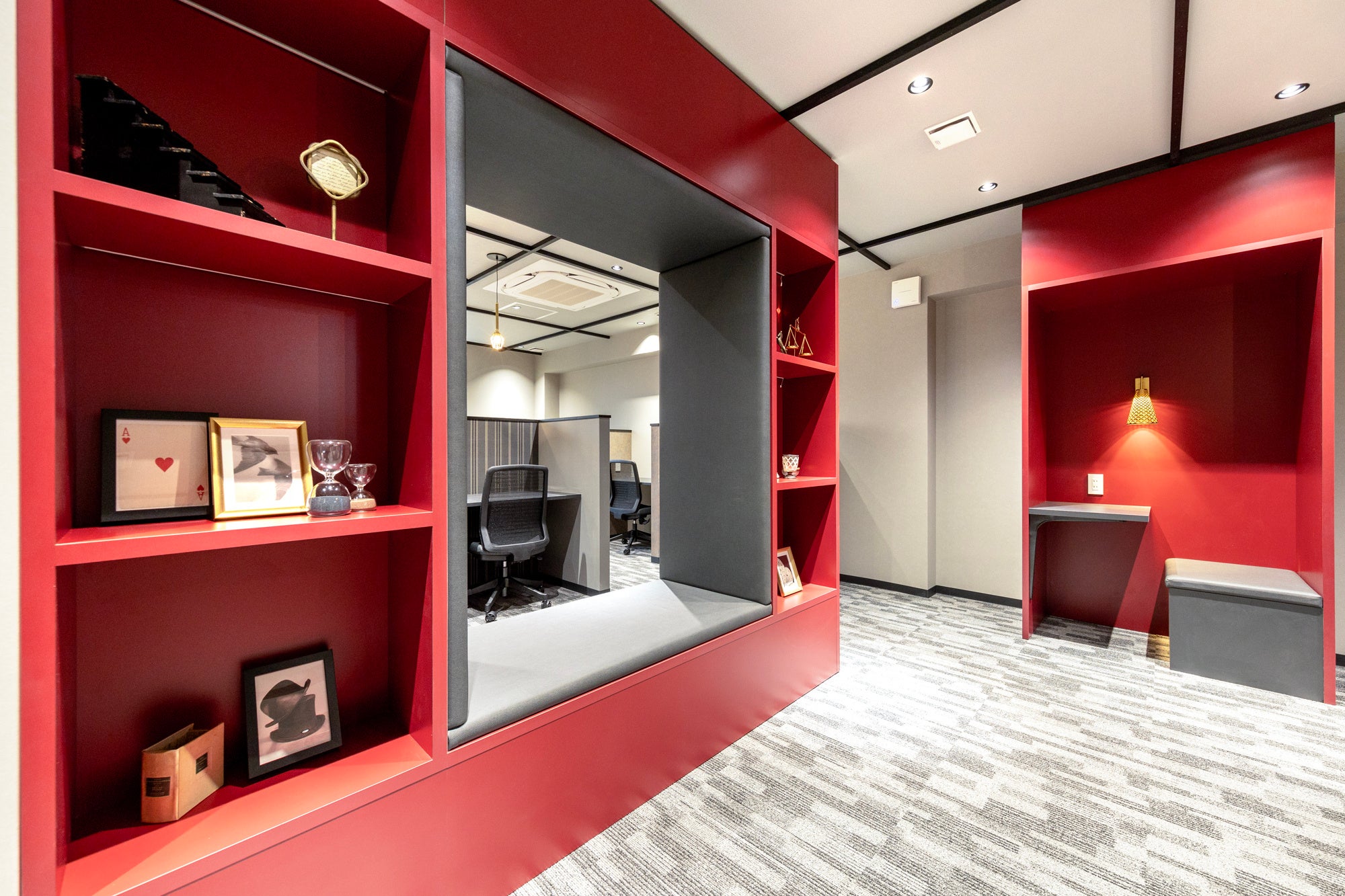 「太閤秀吉功路」にあやかり、出世や成功を応援する想いを込めて武将をイメージした空間デザインが特徴のシェアオフィス。