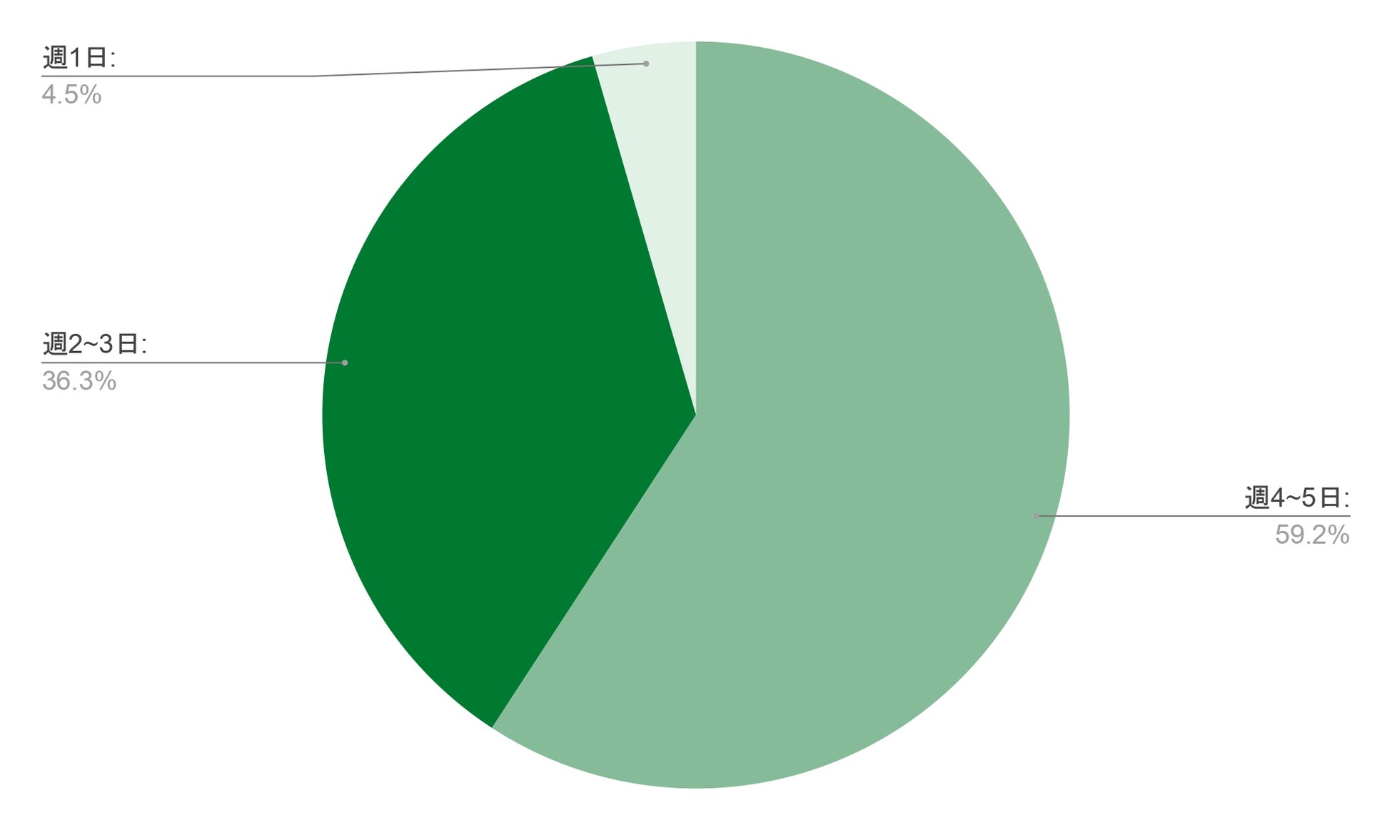 フルタイム志向の方: 週4〜5日のフルタイム案件が59.2%と過半数を占めており、安定した収入を求める方に適しています。