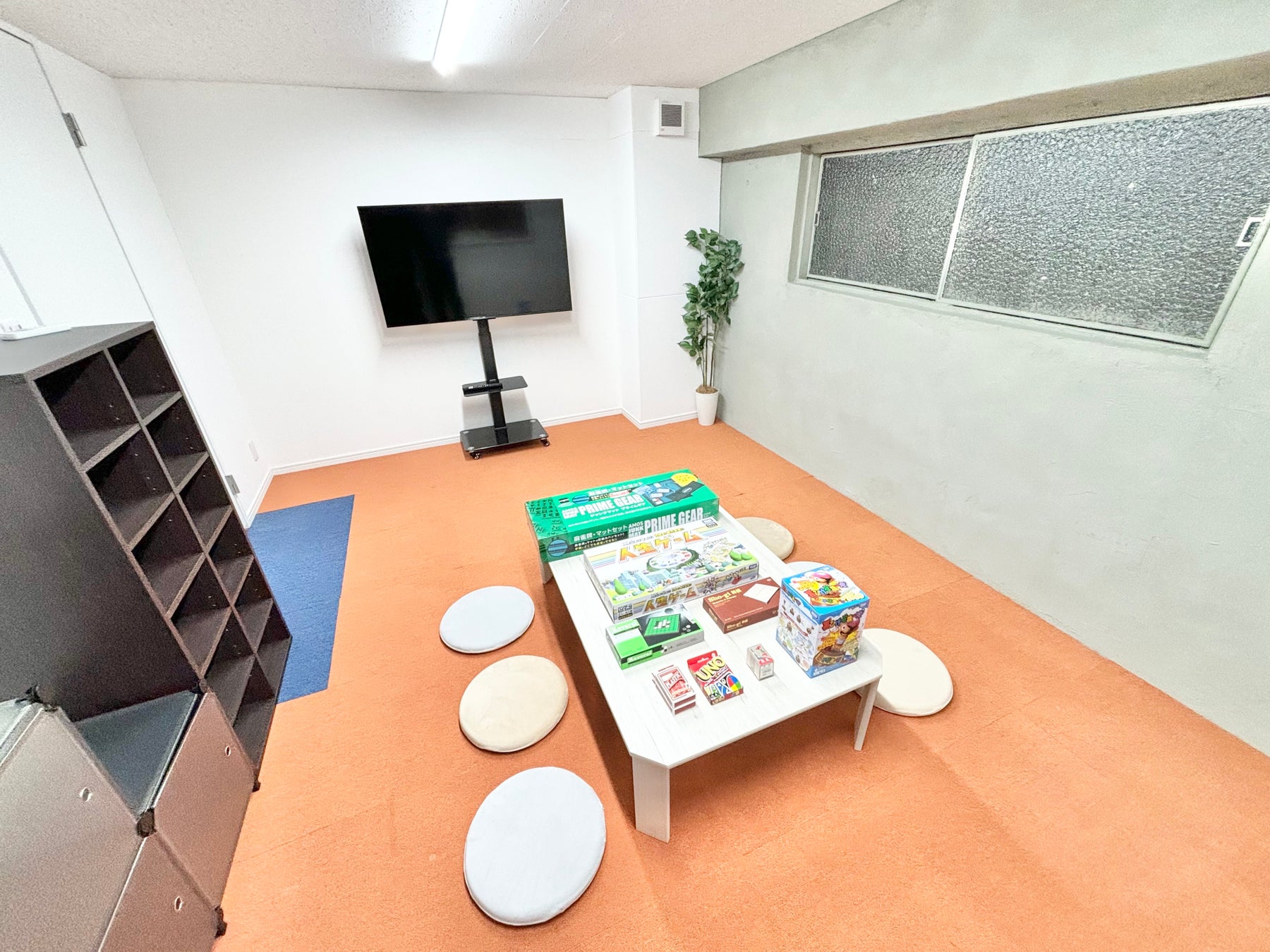 最大8名で利用可能な遊戯スペース(有料)。ボードゲームや動画鑑賞、撮影、ワークショップ開催にも最適です。