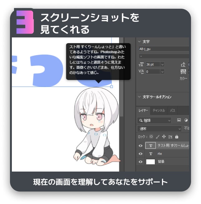 “画面を読む”:画面スクリーンショットから今している作業を把握し、次の一手を提案(オン・オフ切替可)