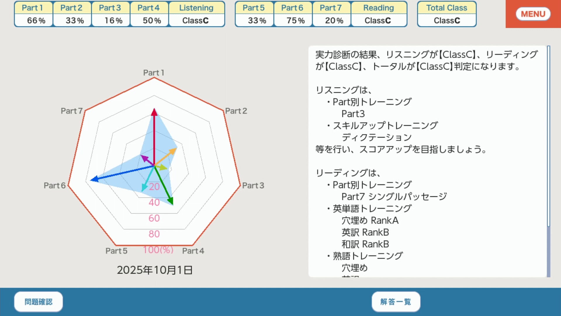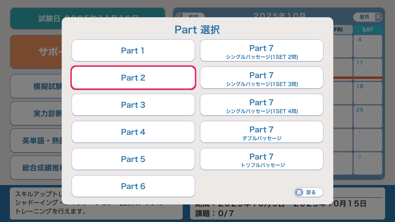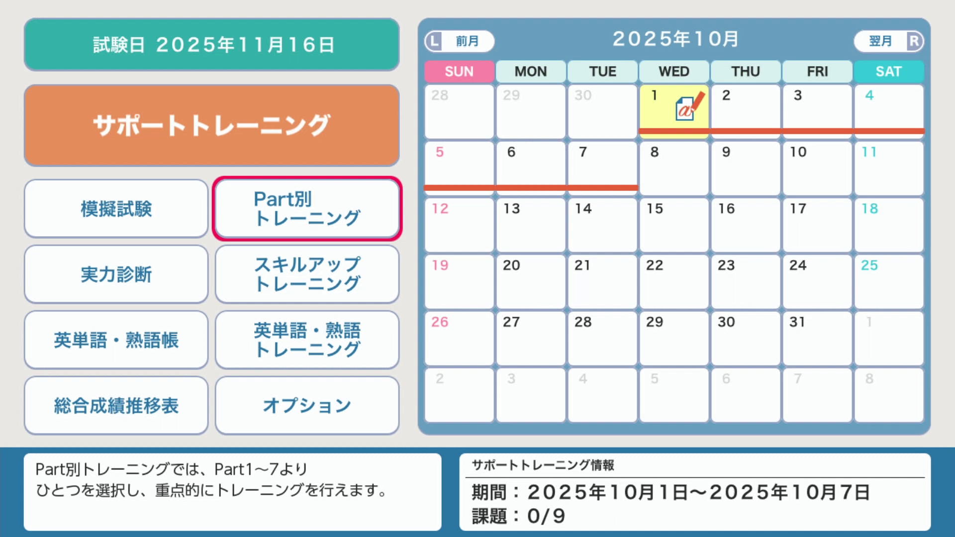 Part別、英単語・熟語なども個別にトレーニングできますので、サポートトレーニングを併用して学びを深めていきましょう。