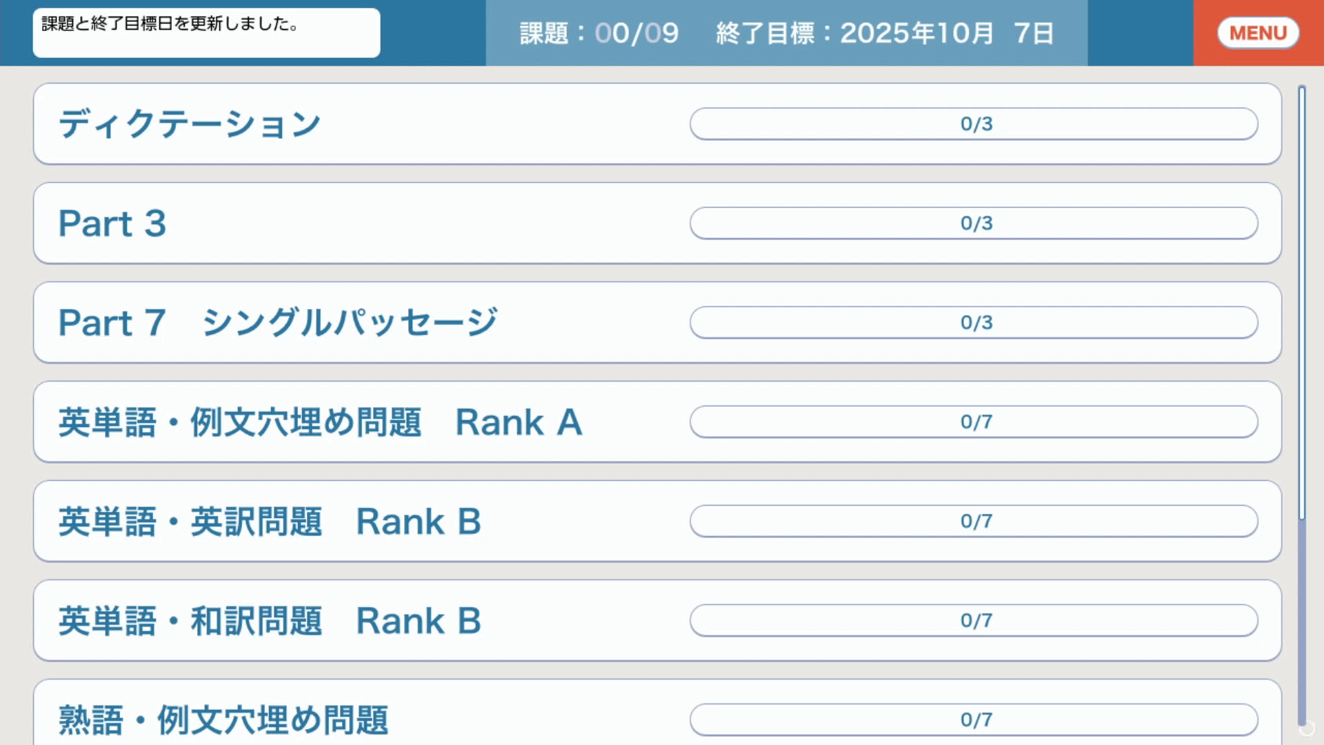 設定された期間内に毎日学習し、全ての課題を達成したら、再び「実力診断」に挑戦しましょう。