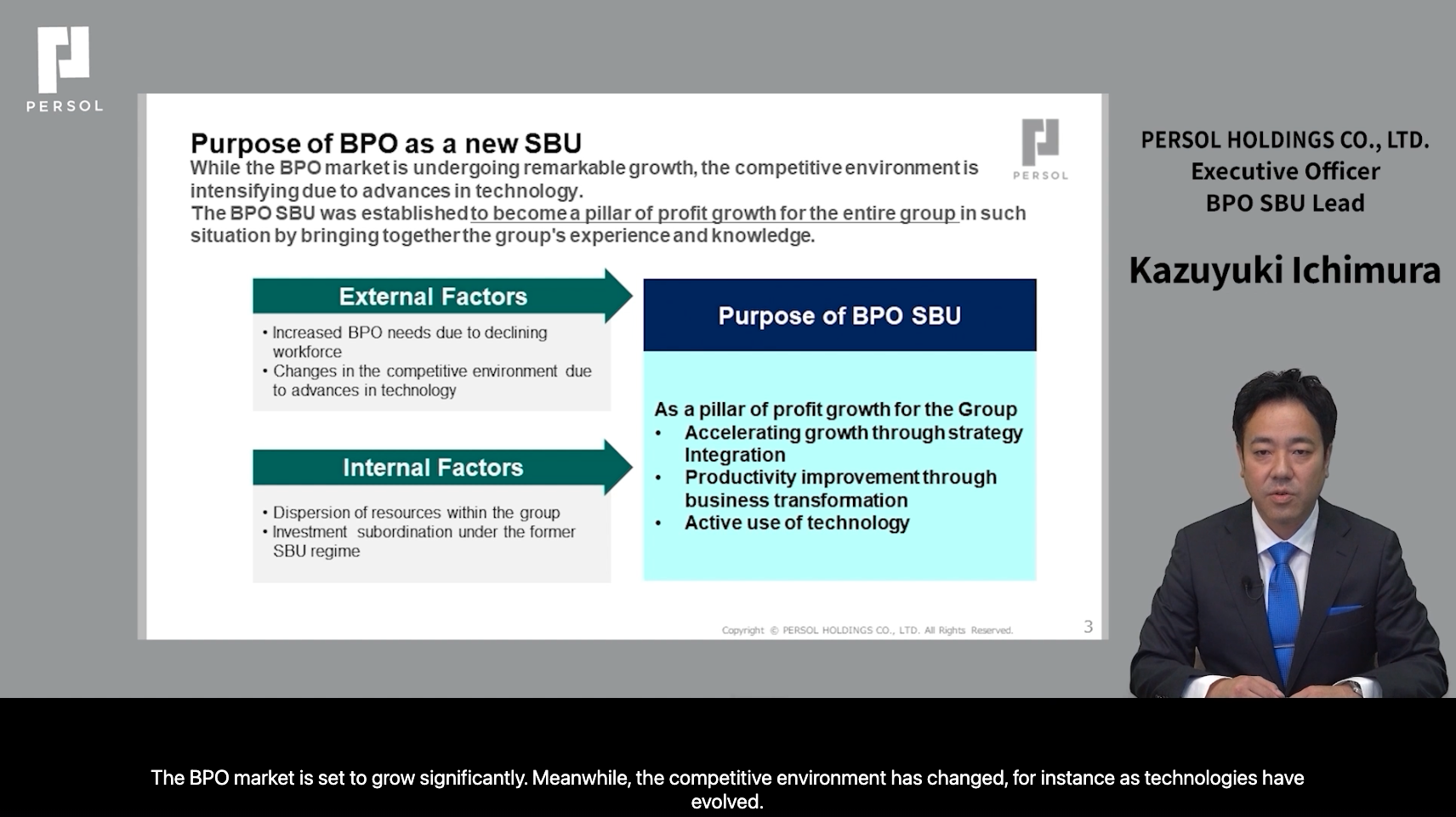 「今回実施した事業説明会では、短期間で準備から配信までスピーディーに行えることと、事前収録とライブ配信、英語字幕の作成、事後のオンデマンド配信をまとめて依頼できることを重視し、実績豊富と聞いていたブイキューブに依頼しました。