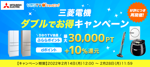 ひかりTVショッピング、「三菱電機 ダブルでお得キャンペーン」を2月14日より開催!