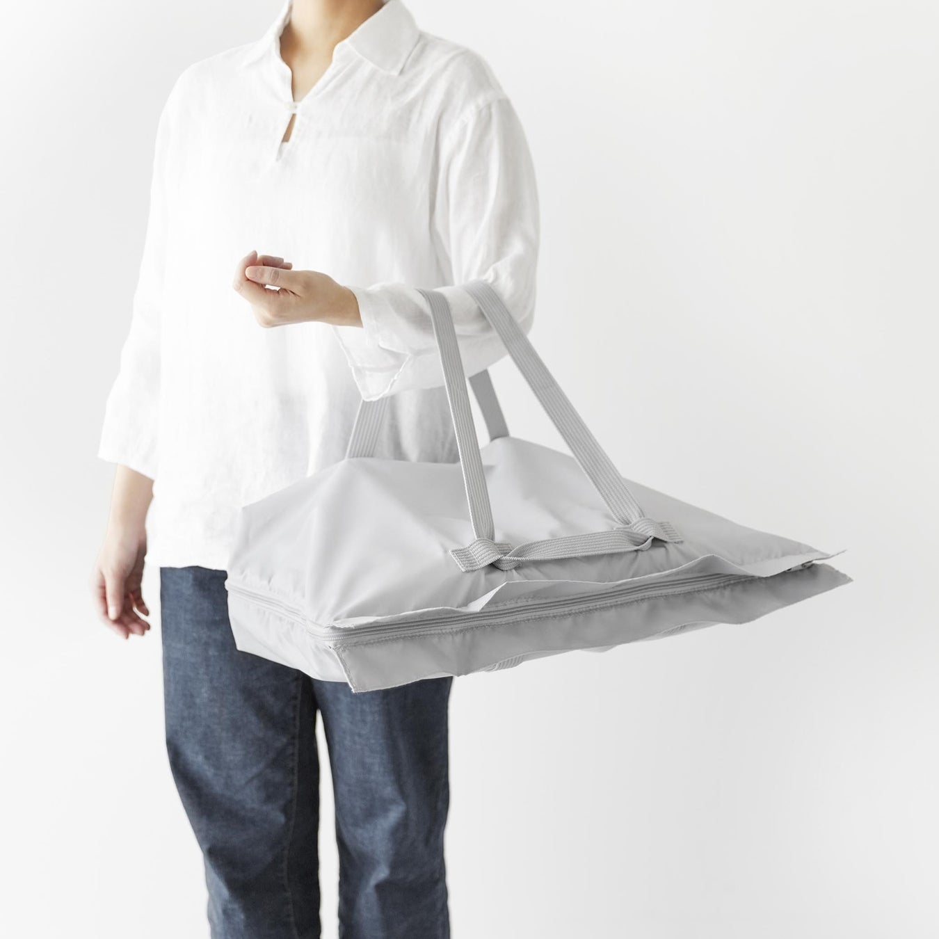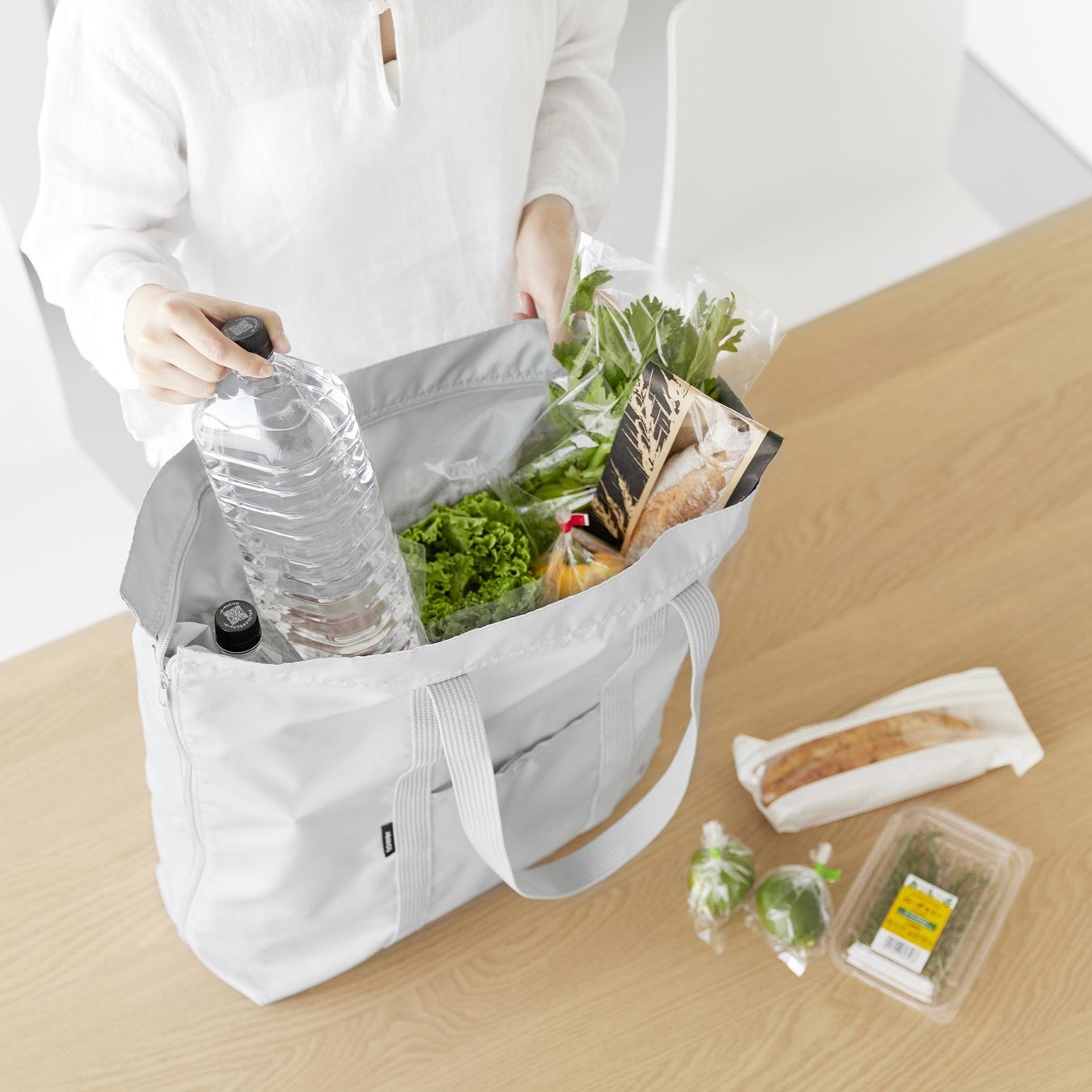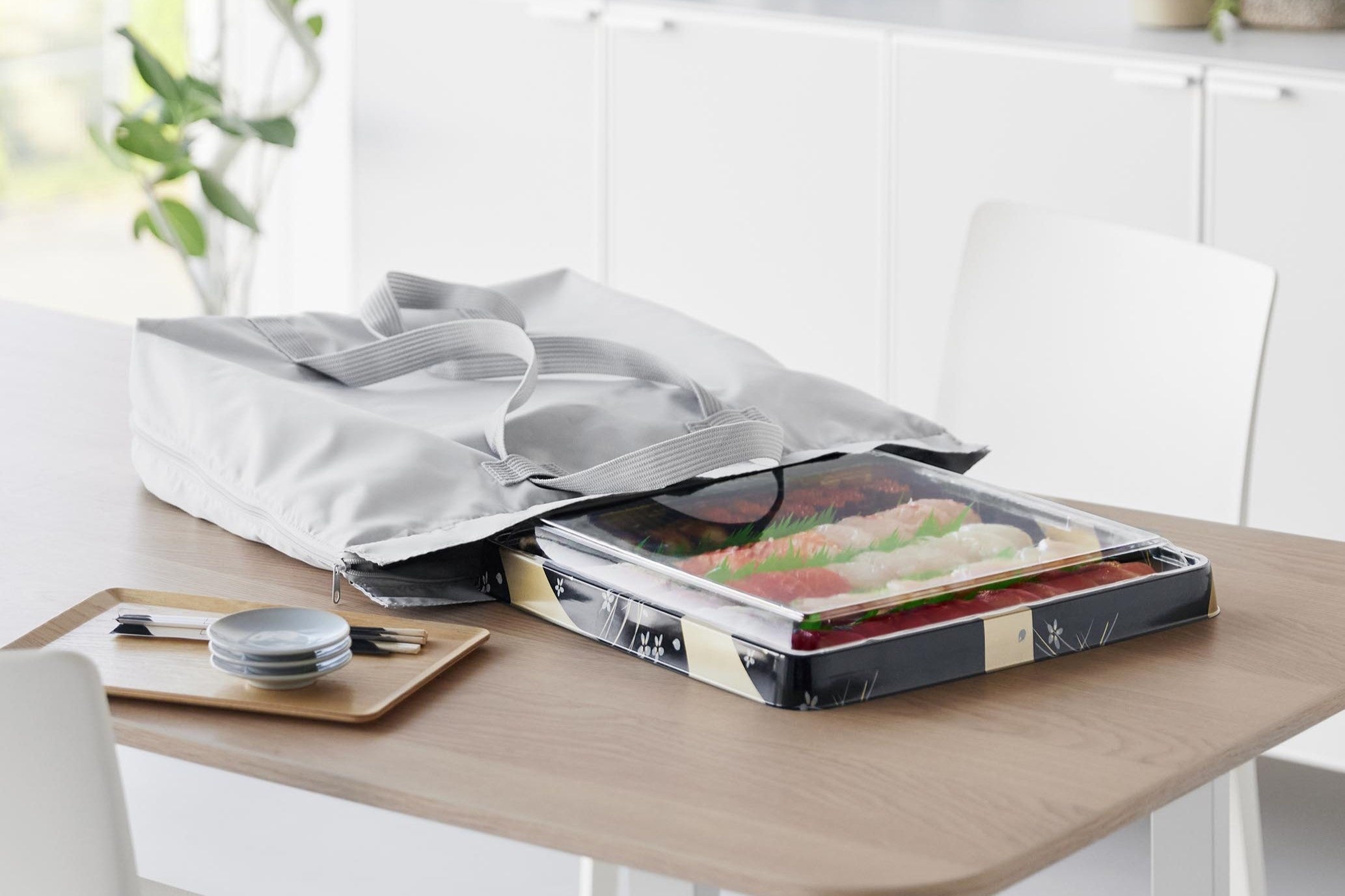傾けたくない持ち帰り寿司やピザも入ってフレキシブルに変化する洗える保冷保温のエコバッグ。