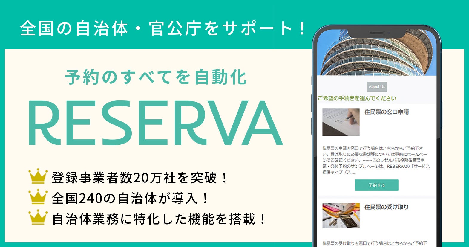 - 自治体向け予約管理システム「RESERVA」で行政サービスがさらに向上