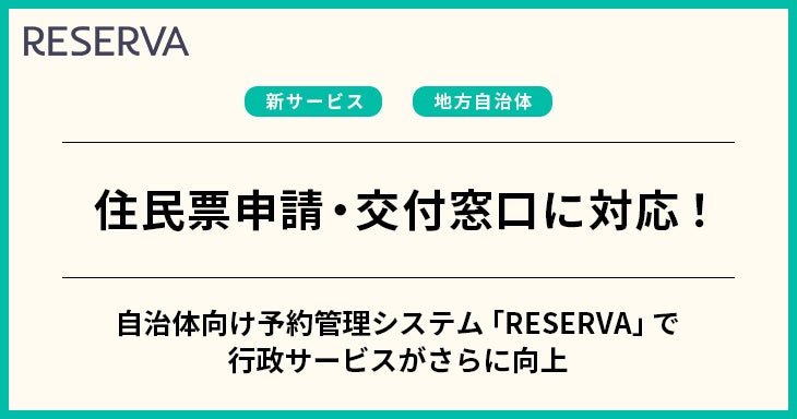 登録事業者数トップクラスの「RESERVA」、市役所の住民票申請・交付窓口で利用できる来庁予約受付システムを提供開始